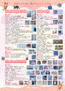 今年12年目(12回目)の開催で、ハンドメイドを体験するワークショップ、手作り品の販売、キッチンカーや露店などの飲食ブースなど、83店舗が出店します。