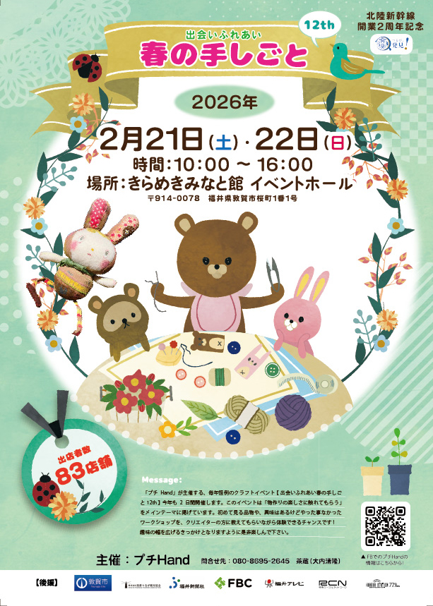 このイベントは、ハンドメイド(手作り)の楽しさを知ってもらおうと、福井県内のクラフト作家の団体プチハンドが毎年開いているものです。